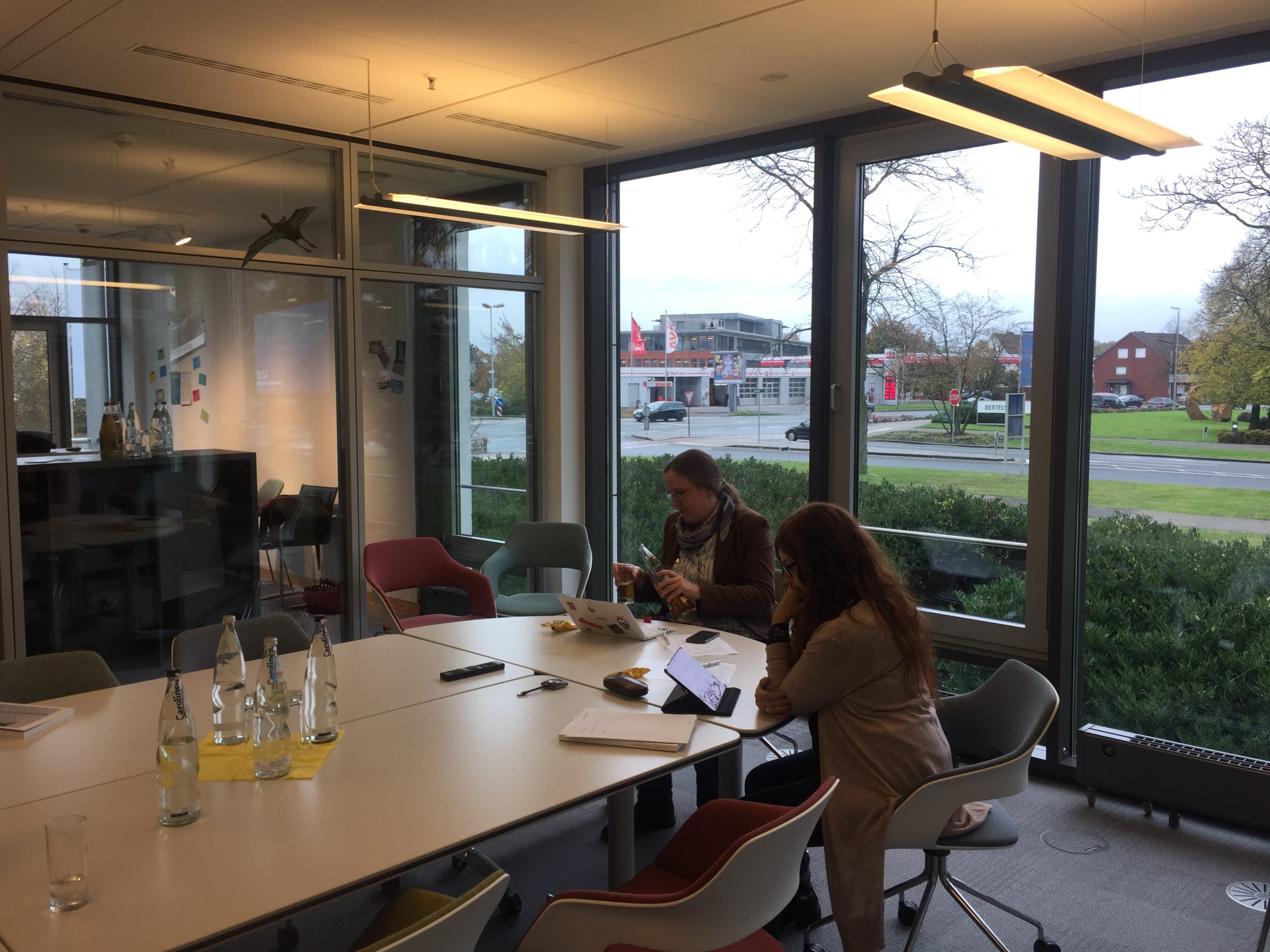 „SUPER!“, haben wir uns gedacht. Zudem haben wir direkt noch eine schriftliche Zusammenfassung aller Gedanken des Tages, alle Impulse auf einen Blick. Wir haben uns dann gefragt, mit wem wir das mal austesten könnten. Da lag der Gedanke nahe, unsere tolle Autoren-Runde aus dem Booksprint zur Vereinbarkeit 4.0 anzusprechen. Und über die Hälfte unserer Autoren haben sich auf den Weg zu uns nach Gütersloh gemacht.