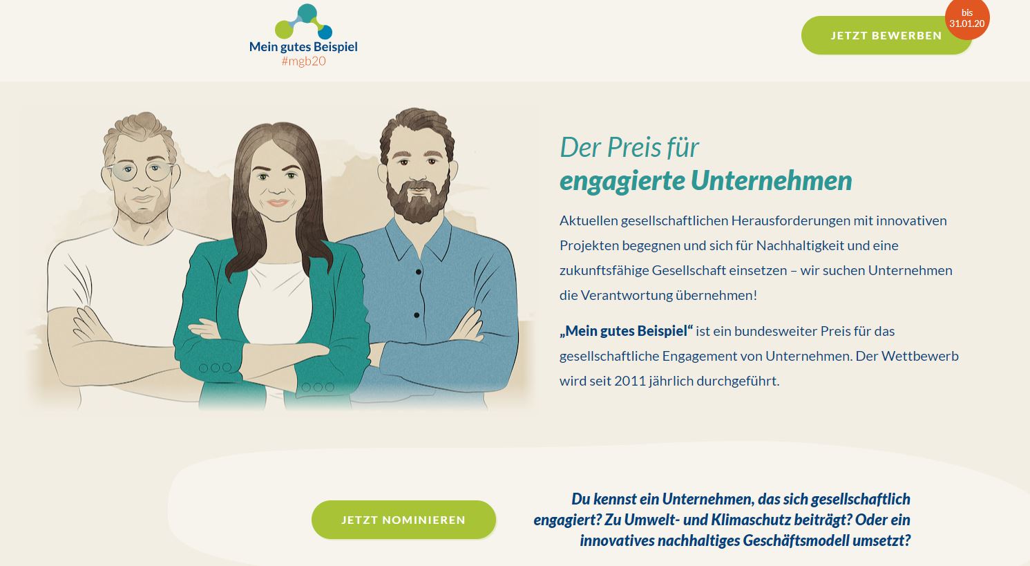 Gemeinsam mit dem Zentralverband des Deutschen Handwerks zeichnet das Projekt „Unternehmensverantwortung regional wirksam machen“ im Wettbewerb „Mein gutes Beispiel“ engagierte Betriebe aus. Bewerben Sie sich oder nominieren Sie Betriebe, die engagiert sind unter www.mgb20.de #mgb20