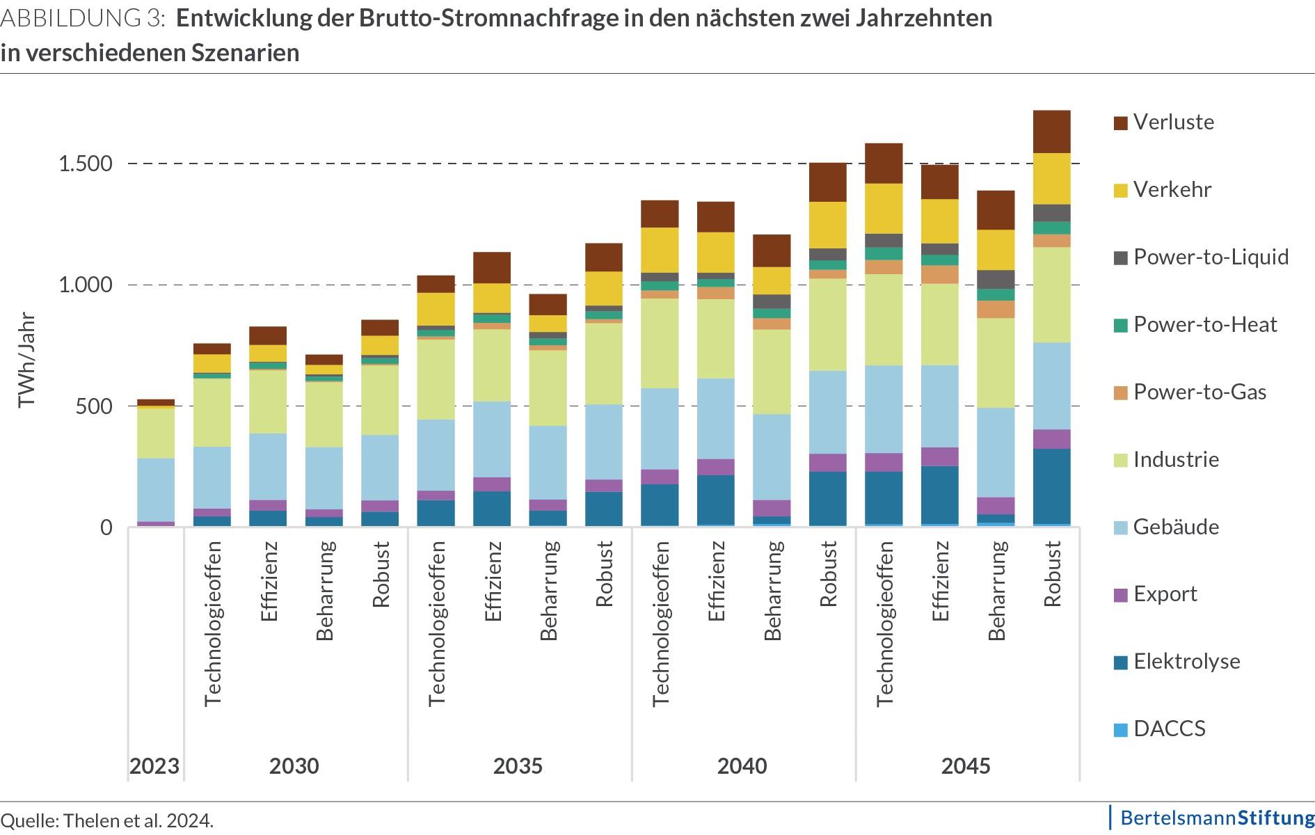 Strombedarf: Die Elektrifizierung zahlreicher Wirtschafts- und Gesellschaftsbereiche ist ein weiterer Baustein auf dem Weg zur Klimaneutralität. Der Strombedarf wird daher in den nächsten zwei Jahrzehnten in Deutschland deutlich steigen – er wird sich voraussichtlich mindestens verdoppeln, möglicherweise sogar verdreifachen (siehe Abb. 3).