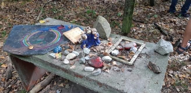 Im Wald in der Umgebung des heutigen Bockwitzer Sees. Ein Ort, an dem in den 1990er Jahren im Rahmen der Demokratie- und Umweltbewegung Gottesdienste abgehalten wurden, zeugt von “change agents“ der Region. ( © C. Richter)